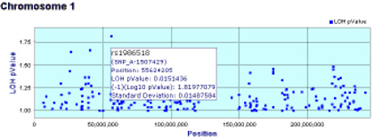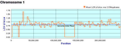 LOH is calculated for each individual SNP in the input dataset, and then the results are'smoothed' across user-specified blocks of SNP’s to reduce noise. The results are presented in a high quality graphical interface that includes interactive charts, tables, and visual mapping of the results onto a chromosome viewer.